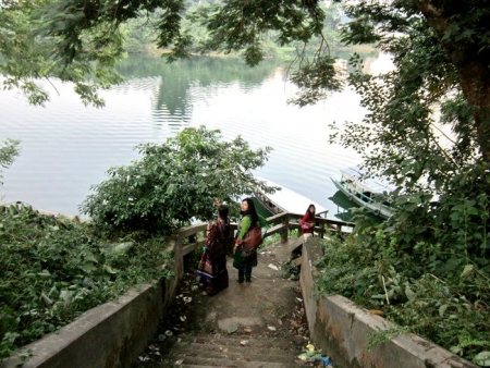 এরপর আমাদের মাঝি যে পুরাতন রাজবাড়িতে নিয়ে গেল, সেটি চাকমা রাজবিহার নয়। বরং সেটি ছিল চাকমারাজ রাজা ভুবন মোহন রায়ের রাজবাড়ি। নৌকার ঘাট থেকে জমিদার বাড়িতে ওঠার সিঁড়ির মাঝে কোন পাড় বা ভাল ব্যবস্থা ছিল না। তাই মহিলাদের উঠতে একটু বেগ পেতে হয়েছে।