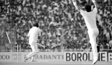 ০৩. Allan Border এর বলে রিভার্স সুয়ীপ করার সময় ৪১ রানে আউট হয় Mike Gatting