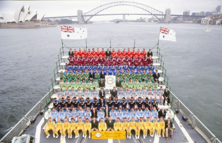 সিডনি অপেরা হাউসে £7500 মূল্যের ওয়াটারফোর্ড ক্রিস্টাল ট্রফির সঙ্গে নয় দলের অধিনায়ক