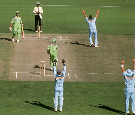 ০৩. ফাইনালে Ramiz Raja কে এল বি ডব্লিউ করেন ইংল্যান্ডের Derek Pringle