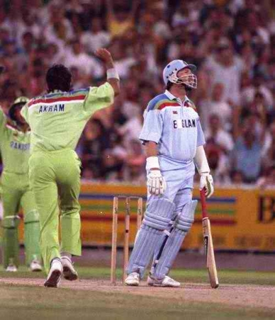 ০৯. ফাইনালে শূন্য রানে Ian Botham কে আউট করেন Wasim Akram