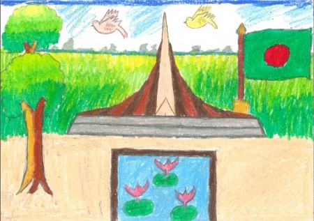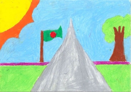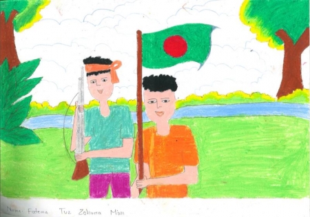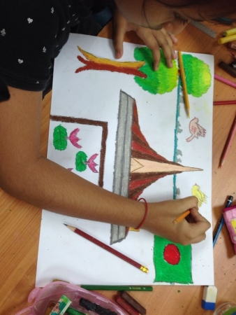 বাংলাদেশে স্বাধীনতা নিয়ে কত দলাদলি, দখলদারিত্ব কিন্তু তার একটু পরিলিক্ষিত হল না এখানে। শিশুগুলো আপন মনে একে চলল তাদের পিতামাতার দেশের স্বাধীনাতার খন্ড চিত্র।