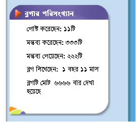 হটাত করেই চোখ পড়লো আমার "ব্লগার পরিসংখ্যান" এর দিকে। তাকিয়ে দেখি ওটা ছিল ঠিক নিচের ছবির মতন।