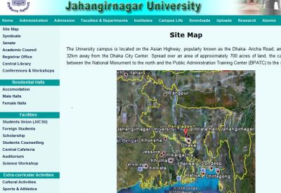 জাহাঙ্গীরনগর বিশ্ববিদ্যালয়ের ওয়েবসাইটে। আমি ওয়েবসাইটে গিয়ে প্রথমেই সাইটম্যাপ উপরে দেখে ক্লিক করলাম সেখানে ভাবলাম সাইটেম্যাপ গেলেই সাইটের সকল কনটেন্টের লিংক একসাথে পাওয়া যাবে। কারন আমি বা আমরা জানি যে সাইটম্যাপ হচ্ছে একটা সাইটের সূচীপত্র স্বরুপ যেখানে সাইটের সকল কনটেন্টকে লিংক করা হয়। কারো যদি এ ব্যাপারে সন্দেহ থাকে তবে সে উইকিপিডিয়ার
