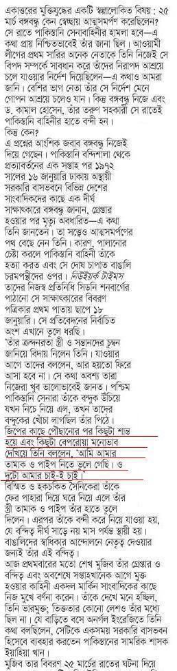 শেখ মুজিবের আত্ন সমর্পন কে সঠিক প্রমান করার করে তার নেতৃত্ব পৌরূষের ঔজ্জ্বল্য ঠিক রাখতে আপ্রাণ চেষ্টা যারা করছেন অনবরত তাদের জন্য আরো ১টি বিষয় তুলে আনলাম।