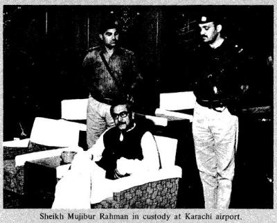 এরপর শেখ মুজিবকে পশ্চিম পাকিস্তানে উড়িয়ে নেয়া হয় এবং আতক ফোর্ট নামক কারাগারে অন্তরীণ করা হয়।"