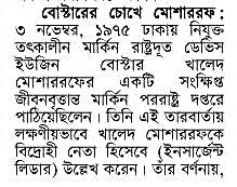 নভেম্বর ৫ / ২০১০ / প্রথম আলো / মার্কিন দলিল : ৬ ই নভেম্বর ১৯৭৫ ঢাকা থেকে ডেভিস বোস্টারের ওয়াশিংটনে পাঠানো দলিল :
