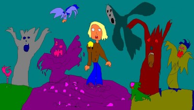 প্রথমে ছবিটা যখন ওর ফোলডারে দেখি, আমিও ভয় পেয়েছিলাম একটু। নামও দেয়া ঘোস্ট ল্যাণ্ড। বাচ্চাদের কলপনায় ভূতের ছবি। আমার ছেলের আঁকা। ওর বয়স আট।