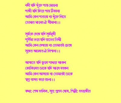 গানটি নব্বইয়ের দশকে বেশ বাজতো। আর্মিদের অনুষ্ঠান অনির্বাণ-এ একজন আর্মি গেয়েছিলো 95-এ। পরে জাহাঙ্গীরের ক্যাসেটে বাজারে আসে 98-এ।
