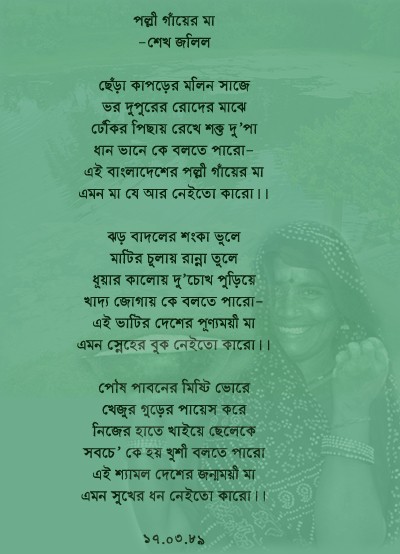 মা-কে নিয়ে লেখা একটি গীতিকবিতার ইমেজ দিলাম।