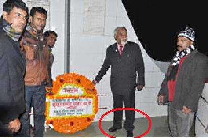 (উপরে ছবিঃ মহান বিজয় দিবসে মনসিংহের গৌরীপুর স্মৃতিসৌধে জুতা পায়ে স্বাস্থ্য প্রতিমন্ত্রী ক্যাপ্টেন অবসরপ্রাপ্ত মুজিবুর রহমান ফকির)