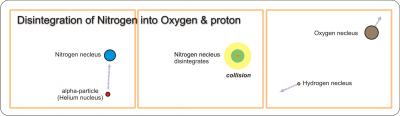 ম্যানচেষ্টারে থাকার সময়েই ১৯১৮'তে রাদারফোর্ড প্রমাণ করেন যে নাইট্রোজেন পরমাণুকে ভেঙ্গে অক্সিজেন ও হাইড্রোজেন তৈরী করা সম্ভব। যদিও তিনি স্বর্ণ তৈরী করেননি তবুও তার এই পরীক্ষা আলকেমিষ্টদের দীর্ঘ লালিত স্বপ্ন, এক পদার্থকে আরেক পদার্থে রূপ দেয়াকে বাস্তবে সম্ভব করে। তিনি ১৯১৯ সালে তার রিসার্চ প্রকাশ করেন এবং পত্র-পত্রিকায় তা হেডলাইন হয়। ১৯৩০ এর দিকে লোকের ধারণা ছিলো যদি কখনও পরমাণু বিভাজন করা হয় তবে পৃথিবী ধ্বংস হবে। কিন্তু রাদারফোর্ড তার প্রায় দশ বছর আগেই পরমাণুকে ভাঙ্গতে সক্ষম হন। তিনি অবশ্য তখনও প্রোটন কে 'unknown particle' হিসেবে বলেছিলেন।
