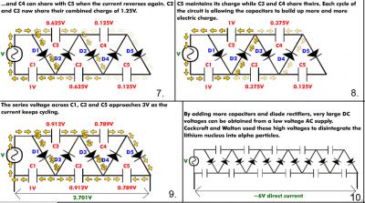 তিনি কন্ডেন্সার দিয়ে একটা 'voltage-multiplying' circuit তৈরী করলেন যা দিয়ে নিম্ন শক্তির এসি থেকে উচ্চ শক্তির ডিসি পাওয়া যায়। তিনি আর ওয়াল্টন মিলে পাঁচটি রেক্টিফায়ার ডায়োড আর ক্যাপাসিটর দিয়ে তৈরী একটি কলাম বানালেন, যা ট্র্যান্সফর্মারের এসিকে চারগুণ বেশি শক্তির ডিসিতে রূপান্তর করতো।