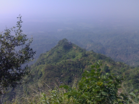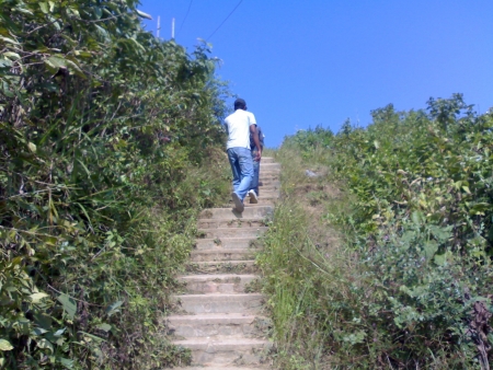 তবে উঠলে গেলে মনে হল খালি উঠছি তো উঠছি। থামাথামি নাই। কিছুদূর যাওয়ার পর একটা মন্দির চোখে পড়ল। আর দেখলাম কিছু বানর। বিদেশি কিছু লোক দেখলাম নেমে আসছে। বুকটা গর্বে ভরে উঠল। কিছুদূর যাওয়ার পর একটা চায়ের দোকান দেখলাম। এতো উপরে দোকান থেকে তো আমি থ! তাতে আবার চা খাচ্ছে কিছু পুলিশ। এর পরে আবার এক নাগাড়ে উঠা। যখন প্রায় পাহাড়ের ৩ ভাগের দুইভাগ উঠেছি তখন আর পা চলে না। কিছু কলা পাওরুটি খেলাম। আর সাথে পেলাম আরেক তিন জনের একটি গ্রুপকে। তাদেরকেও ভাগ দিলাম। এক ঘন্টা ওখানে কাটিয়ে এবার বাকি রাস্তা। একেবারে চলে এসেছি প্রায় সেই মুহূর্তে দেখলাম আরেকটা চায়ের দোকান। আকারে ছোট। যেখানে আমাদের উঠতেই খবর হয়ে যায় সেখানে কিভাবে তিনি এতো উপড়ে উঠে চা বিক্রি করেন ভাবলে অবাক হয়ে যাই। যাই হোক উপড়ে উঠলাম। মজাও করলাম। কাটালাম তিন চার ঘন্টা। আর দূরের সাগর, জাহাজের সৌন্দর্য মনে যেন রঙ লাগিয়ে দিচ্ছিল। পাহাড় থেকে নামার পথে তিনজনেই মিলে ধরলাম গান। ছোট ঝরনায় ছবি তুললাম কিছু।