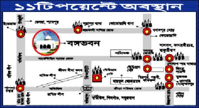 14 দলের আজকের ঘেরাও কর্মসূচির জন্য বঙ্গভবনের চারপাশ ঘিরে থাকবে 'কারফিউ' অবস্থা। সর্বোচ্চ সতর্কাবস্থায় রাখা হয়েছে বঙ্গভবনের অভ্যনত্দরীণ নিরাপত্তায় নিয়োজিত প্রেসিডেন্ট গার্ড রেজিমেন্টকে। ঘেরাও কর্মসূচি উপলক্ষে আজ সকালেই বঙ্গভবনের চারপাশ ঘিরে আইনশৃঙ্খলা বাহিনীর 7 হাজার কর্মী মোতায়েন হবে।