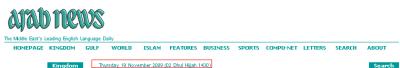 এখানে যে ব্যাপারটা লক্ষণীয় তাহলো- আজকের (১৯ নভেম্বর ২০০৯ তারিখ) ইসরাঈলী (ইহুদী) পত্রিকা Jerusalem Post এর ইহুদী ক্যালন্ডারের তারিখ হল 2 Kislev 5770 এবং একই দিনের সৌদী পত্রিকা arabnews এর হিজরী ক্যালন্ডারের তারিখ হল 02 Dhul Hijjah 1430।