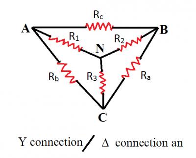 ওয়াই কানেকশনে সার্কিট এর এলিমেন্ট গুলা ঠিক ওয়াই এর মত সবগুলার এক মাথা একসাথে লাগানো হয়। বাকি ৩ টা মাথা অন্য এলিমেন্টের সাথে যুক্ত থাকে। ডেল্টাতেও ঠিক ত্রিভুজের মত করে ৩ টা এলিমেন্ট লাগানো হবে। তাহলে ওয়াই থেকে ৪ টা নোড বের হল আর ডেল্টা থেকে ৩ টা। আচ্ছা একটা কথা। ওয়াইকে “টি” (T) কানেকশন ও বলে। কারন দেখতে একইরকম। আর ডেল্টাকে “পাই” () কানেকশন ও বলে। উল্লেখ্য যে, পাই ও গ্রিক বর্ণমালার একটা বর্ণ। এইটা কিন্তু খাওয়ার পাই না।