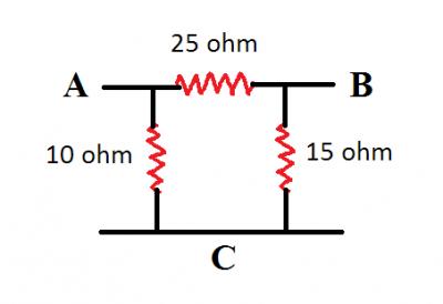 নোড CA এর পরিস্থিতি বিবেচনা করি। ডেল্টার জন্য ইকুইভ্যালেন্ট রেজিস্ট্যান্সের মানঃ