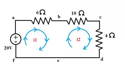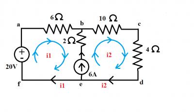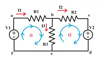 এখানে ২ টি মেশ আছে। প্রথম ও দ্বিতীয় মেশ কারেন্ট কে যথাক্রমে ছোট হাতের আই দিয়ে বুঝানো হয়েছে। (i1, i2)