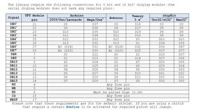 UTFT আরও অনেক মডেল support করে। নিচে supported মডেল সম্বলিত লিস্ট টি দেওয়া হলো। UTFT Library folder এর ভেতরেও UTFT_Supported_display_modules_&_controllers নামক পি ডি এফ ফাইলে লিস্টটি পাওয়া যাবে।