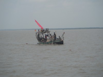 নদীর পাশ দিয়ে ট্রলার এগিয়ে চলল।জেলেদের মাছ ধরার দৃশ্য দেখতে আমরাও আড্ডায় জমে গেলাম।সবাই নিরুদ্বেগ প্রকৃতির ছবি তোলায় মগ্ন।একসময় মধ্য দুপুরের উদোম রোদে পড়ে গেলাম।কোন বাতাস নেই।ভয়াবহ তাপে সিদ্ধ হওয়ার মত অবস্থা আমাদের।মাঝি আমাদের প্রথমে বলেছিল এক দের ঘণ্টার মত লাগবে।এদিকে এক ঘণ্টা পেরিয়ে দুই ঘণ্টাও পাড় হয়ে যায়।আমাদের নিঝুম দ্বীপের এখনও খবর মেলেনা।অনেকেই আফসোস করতে লাগলো কেন বাইকে করে গেলনা অন্তত তীব্র উত্তাপ থেকে তো বাঁচতে পারতো।সময় টাও যেন আমাদের বিরুদ্ধে চলে গেল।কিছুতেই ফুরোয় না।