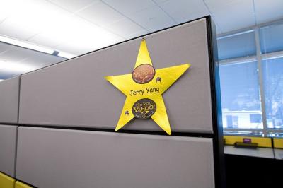 জেরি ইয়াং এবং ডেভিড ফিলো , ইয়াহু হেডকোয়াটার এর সামনে ।