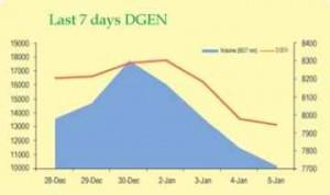 ২০১১ সালের শুরুতেও দরপতনের এ ধারাবাহিকতা অব্যাহত থাকে। গতকাল রোববারও দরপতন দিয়েই দিন শুরু করে ডিএসই, শেষে তা ১৯ নভেম্বরের রেকর্ড ছাড়িয়ে যায়। দিনের লেনদেন শেষে ডিএসইতে সাধারণ সূচক দাঁড়ায় ৭১৩৫ দশমিক ০২, যা দিনের শুরুর চেয়ে ৬০০ দশমিক ২১ পয়েন্ট বা ৭ দশমিক ৭ শতাংশ কম। কোন ব্যবস্থা না নিয়ে রোববার সন্ধ্যায় সিকিউরিটিজ এন্ড এক্সচেঞ্জ কমিশন (এসইসি) ও বাংলাদেশ ব্যাংকের কর্মকর্তাদের সঙ্গে বৈঠক শেষেঅর্থমন্ত্রী উল্টো বললেন, " শেয়ারবাজারে ৯৬ সালের পুনরাবৃত্তি ঘটবে না "