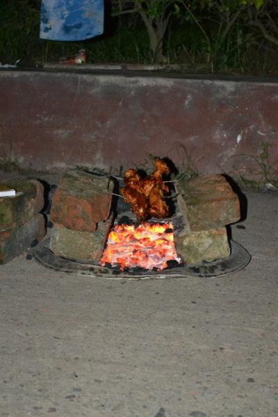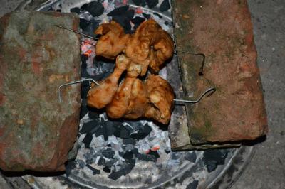 মুরগীর পিসে মসলা লাগিয়ে বারবিকিউর জন্য প্রস্তুত করা হচ্ছে..