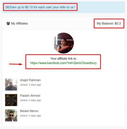 পরে এক বন্ধু জানালো বান্ধব ডটকম থেকে অ্যাফিলিয়েট লিঙ্কের মাধ্যমে টাকা আয় করা যায়। এবং নিজে ট্রাই করে দেখলাম সত্যিই হচ্ছে! তাহলে দেখা যাক কীভাবে বান্ধব ডটকম থেকে আপনি টাকা আয় করতে পারেন। প্রথমে এই লিঙ্কে view this link গিয়ে সাইন আপ করুন। এটি আমার অ্যাফিলিয়েট লিঙ্ক। আপনি এখানে সাইন আপ করলে আমি ১০ সেন্টের মতো পাবো। মানে প্রায় ১০টাকার কাছাকাছি। কীভাবে আপনি তা করতে পারবেন তা আমি নিচে ছবির মাধ্যমে দেখিয়ে দিচ্ছি। তাহলে বন্ধুরা আর দেরি কেন! এখনই শুরু করে দিন!!!