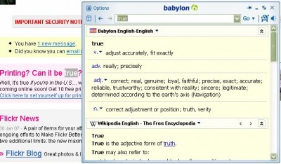 আপনার নিশ্চয়ই Babylon Dictionary এর কাজ জানেন। ধরুণ, আপনি একটা ওয়েব সাইট এ একটা আর্টিকেল পড়ছেন, হঠাৎ এর অর্থটা বুঝতে পারছেন না, তখন CTRL+MOUSE (click Right Buttoon) এ ক্লিক করলে আপনার ঐটার আরো কিছু অর্থ দেখিয়ে দিবে। কাছাকাছি অর্থ দেখে আপনি বুঝতে পারবেন, আসলে কি বুঝাতে চাচ্ছে।
