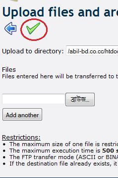 আপনার index.htm ফাইলটি আপলোড করুন। আপলোড শেষে টিক চিহ্ন বাটনে ক্লিক করুন।