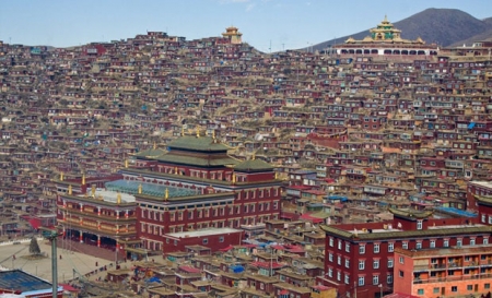 ১২,৫০০ ফুট উঁচুতে শান্ত, নিরিবিলি গ্রাম। বিশ্বের সবচেয়ে বড় বৌদ্ধ-বসতি। হ্যাঁ, ৪০ হাজার বুদ্ধ সন্ন্যাসী-সন্ন্যাসিনী আছেন এখানে। নানা ভাষাভাষির হলেও যাদের ঘর এক, পরিধান এক, ধর্ম এক, একসঙ্গে শিক্ষা। একসঙ্গে প্রার্থনা। দেশকালগণ্ডির সীমাবদ্ধতা নেই। কেউ এসেছেন পাশের তিব্বত থেকে, কেউ চীনেরই, কারও আগমন মালয়েশিয়া থেকে কারও বা আসা তাইওয়ান, হংকং নয়তো সিঙ্গাপুর। উদ্দেশ্য একটাই, তিব্বতীয় বৌদ্ধধর্মের পাঠ। সেই পাঠের জন্য এখানে গড়ে উঠেছে একটা প্রতিষ্ঠান, যার নাম লারুং গর বুদ্ধ অ্যাকাডেমি। এই অ্যাকাডেমিকে কেন্দ্র করেই চারপাশে বৌদ্ধ-বসতি। গা ঘেঁষাঘেঁষি পড়শি হলেও, সেখানে একটা শৃঙ্খলা আছে। পড়শির বয়স ও লিঙ্গ অনুযায়ী পাশাপাশি এক একটা জেলা। এ গ্রামের সবাই যে পড়ুয়া, তা নয়। সেখানে কিছু তিব্বতীয় বাস করেন বংশপরম্পরায়। কিন্তু, তারাও সেখানে বিচ্ছিন্ন দ্বীপের মতো নয়। সুন্দরভাবে মিলেমিশে রয়েছেন। সব ঘর, সবার ঘরই প্রায় একরকম। তিনটে করে ঘর। কারও ঘরে আলাদা করে শৌচাগার নেই। বাড়ির অদূরে, নির্দিষ্ট জায়গায় একসঙ্গে, সবার জন্য শৌচাগার। বাড়ির রং-ও এক। লাল-খয়েরির মিশেল মিলন মহান যেন। ভোরে মন্দের প্রার্থনা, সবাইকে বেঁধে রেখেছে একসুরে। এত পরিপাটি, তবু খুব বেশি আগে নয়, এই তো সেদিন জন্ম। গত শতকের আশির দশকের প্রথমেই।