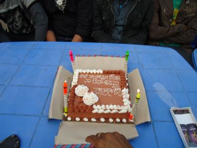উপরের ছবিতে ব্লগ ডের যে কেক দেখা যাচ্ছে তাতে বাংলা লিখতে ব্লগার ভুলো মন এবং তততততত এর বেশ বেগ পেতে হয়েছে। বেকারির লোকটা নাকি বাংলায় লিখতে রাজিই হচ্ছিলো না। কারন তার বাংলা লেখা খারাপ! কিন্তু বাংলা ব্লগ ডে বলে কথা। বাংলাতেই লেখা হলো।