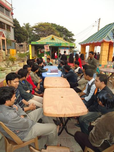 তবে সেখানে আমাদের জন্য অপেক্ষা করছিলো আরেকটি দুঃসংবাদ! হরতালের কারনে জানা আপুর পাঠানো ব্যানার রাজশাহীতে এসে পৌছায় নি। আমাদের হাতে যদিও কিছু অবশিষ্ট পোষ্টার রয়েছে যদিও কিন্তু ব্যানার ছাড়াতো র্যালি অসম্ভব। তাই অনুষ্ঠানের প্রোগ্রামে পরিবর্তন আনতে হলো। চা চক্র শেষে আমরা দুঃখ ভারাক্রান্ত মনে আমাদের গন্তব্য স্থল পদ্মা গার্ডেনের উদ্দেশ্যে রওনা হলাম। সেখানে আমাদের জন্যে অপেক্ষা করছেন ফিমেল ব্লগার স্বপ্নবিলাস এবং শাকিলা জান্নাত।
