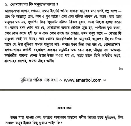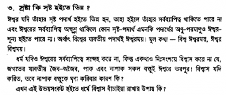 আরজ আলী মাতুব্বর রচনাসমগ্র প্রথম খন্ড সত্যের সন্ধান (দ্বিতীয় প্রস্তাব – ঈশ্বর বিষয়ক) এর প্রশ্নের উত্তর।