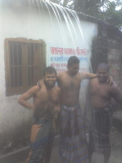 বৃষ্টি ভেঁজা গোসল করলাম তিন বন্ধু মিলে...বাসার দরজায় কাজ করছিলম। বৃষ্টির পানি চারদিক তলিয়ে দিচ্ছিলো, বন্ধুরা বৃষ্টিতে ভিঁজে যাচ্ছিলো গোসল করতে, আমিও আর লোভ সামলাতে পারলাম না। পিছু নিলাম আমিও...জানালা দিয়ে ছোটভাইকে ডাকলাম আমাদের একটা ছবি তোলার জন্য। এভাবেই আমাদের বৃষ্টিভেঁজা গোসলের দৃশ্য ক্যামেরা বন্ধী হলো।