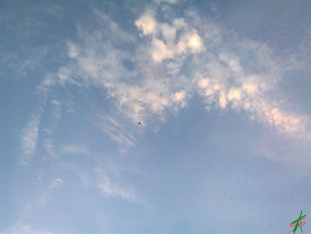 নীল আকাশ সাদা মেঘে ঢাকা।