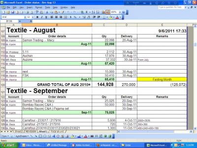 কাজটি হচ্ছে আমার ৩টি পোষাক কারখানার ওর্ডার স্ট্যাটাস মেন্টইন করা।