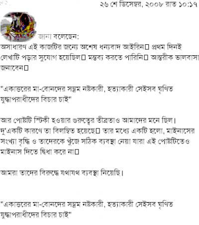 এতে আমি এখন সাম.ইন কর্তৃপক্ষের কাছে নিজের অভিমানে এবং ক্ষোভের জন্য ক্ষমা চাই। আপনারা সেই সব ব্লগারদের বিরুদ্ধে ব্যবস্থা নিয়েছেন যারা এধরনের ইতিহাস সম্বলিত পোষ্টে মাইনাস দিতে পারে।