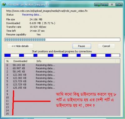 আমি কনো কিছু ডাইনলোড করলে সুধু ৮ পার্ট এ ডাইনলোড হয় এর বেশী পার্ট এ ডাইনলোড হয় না , কেন ? ... বাকিটুকু পড়ুন