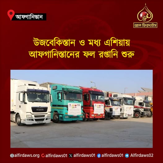 বালখ প্রাদেশিক প্রশাসনের মুখপাত্র হাজি জায়েদ হাফিযাহুল্লাহ জানিয়েছেন, উজবেকিস্তান এবং মধ্য এশিয়ায় ২,৫০,০০০ ডলার মূল্যের ৫০০ টন আফগান ডালিম, আপেল...