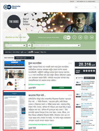 যাইহোক এবার তাহলে মুল কথা আসা যাক। প্রায় ১০ বছর ধরে বাংলা ব্লগের পথ চলা শুরু। বিভিন্ন চড়াই উতরাই এর মধ্যে দিয়ে বাংলা ব্লগের পথ চলা থেমে নেই। যেহেতু ব্লগিং কোন পেশা বা কোন ক্রিয়েটিভ ক্যাট্যগরির মাঝে এখনো প্রতিষ্ঠিত হতে পারেনি তাই যারা ব্লগিং করেন তাদের উৎসাহ কিংবা কাজের মুল্যায়নের কোন ব্যবস্থা নাই। কিন্তু ডয়চে ভেলে ২০০৪ থেকে বিভিন্ন ভাষার ব্লগারদের অনলাইন এক্টিভিটিস এবং তাদের লেখালেখির জন্য জুরী বোর্ডের সিলেকশনের মাধ্যমে কিছু ব্লগ কে বাছাই করে নির্বাচিত করে যা পরবর্তিতে বাছাইকৃত ব্লগ থেকে অনলাইনে ভোটাভুটির মাধ্যেম বিজয়ীকে পুরস্কার প্রদান করে থাকেন । ডয়েচে ভেলে তাদের এই পুরষ্কার ২০০৪ থেকে শুরু করলেও বাংলা ভাষাকে সংযুক্ত করেন ২০০৯ থেকে।