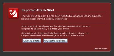 আইজকা প্রাথমিক সমাপনি পরিক্ষার রেজাল্ট দিছে। সেইটা আবার ওয়েবে দিবো কইয়া http://www.dpe.gov.bd/ নামে সাইটও খুলছে। মজিলা দিয়া খুলতে গিয়া দেখি সাইটরে এটাক সাইট হিসাবে ব্লক করা হইছে। ইন্টারনেট এক্সপ্লোরার দিয়া ওপেন করলাম। মাশাল্লাহ, মাইক্রোসফট কাগুরা কিছ্ছু কইলো না। কিন্তু সাইট ওপেন কইরা তো পুরা ধরা খাইয়া গেলাম। এন্টি ভাইরাস দেখি ভাইরাস এলার্ট দিতে শুরু করলো। যাউক, বাইচা গেলাম, ভাইরাস আমারে ধর্তে পারে নাই। কিন্তু কাগুরা, যেরা নতুন এন্টি ভাইরাস ব্যবহার করে নাই আবার ইন্টারনেট এক্সপ্লোরারও ব্যবহার করছে তাগো কি অবস্থা আল্লা মাবুদ জানে।