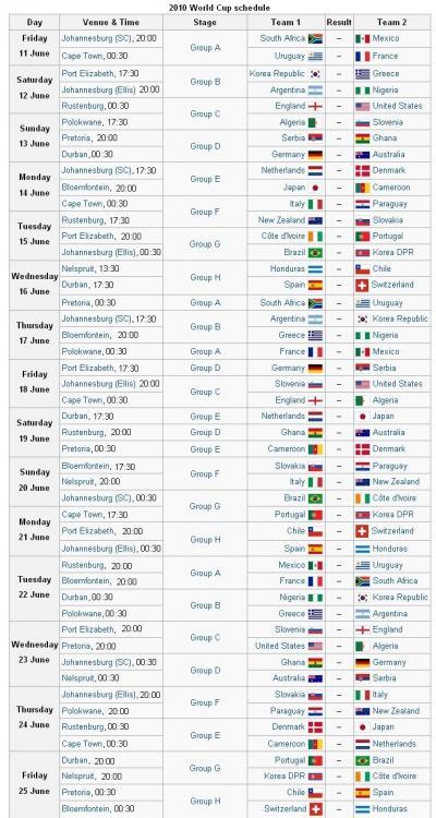 ফুটবল বিশ্বকাপের সময়সূচী(বাংলাদেশ সময় অনুযায়ী) ।