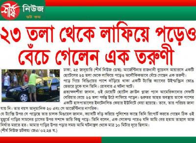 ২৩তলা থেকে লাফিয়ে পড়েও বেচে গেলেন এক তরুণী।