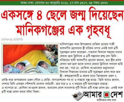 এক সঙ্গে ৪ সন্তান জস্ম দিয়েছেন, মানিকগজ্ঞের এক গৃহ বধু।