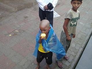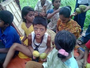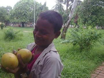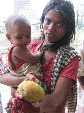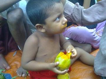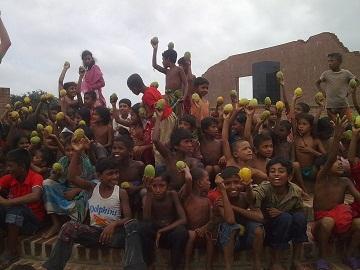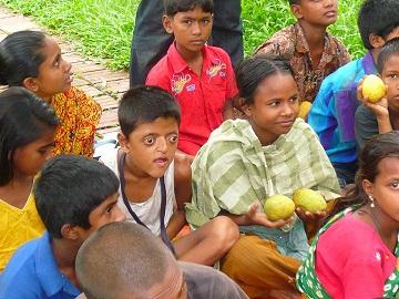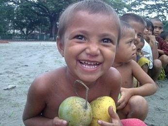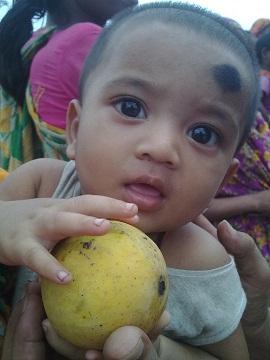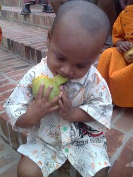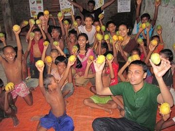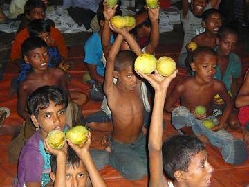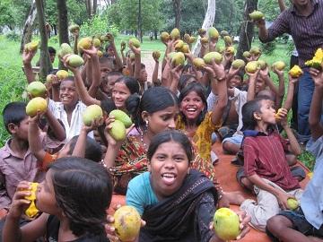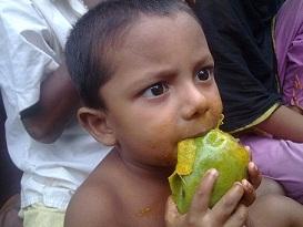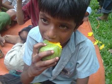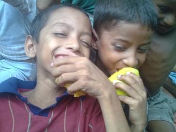 আম পেয়ে খুশি পথ শিশুরা।