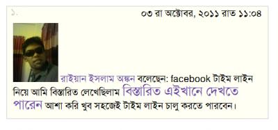 গত ২৩সেপ্টেম্বর সন্ধ্যায় সামুতে একটি পোষ্ট দিয়েছিলাম কিভাবে ফেসবুক টাইমলাইন ফিচার সক্রিয় করতে হয়। ফেসবুক নিয়ে মানুষ দের যথেষ্ট আগ্রহের কারনে আপনাদের ব্যাপক সাড়া পেয়েছিলাম