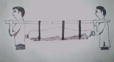 বরাবরের মতই নির্ধারিত সময়ের অনেক পরে আমরা জাড়িয়া পৌছাঁলাম। সেই চির চেনা দৃশ্য, ট্রেন থামার সাথে সাথে চিৎকার চেচা মেচি আর আনন্দ ঝগড়া মিলে মিশে একাকার। তার ঠিক পঁচিশ কি ত্রিশ মিনিট পরেই সব চুপচাপ। একেবারে নিস্তব্ধ। শুধু স্টেশনের ঘড়িটাই জানিয়ে দিল কোন এক ঘন্টা পড়ল তখন। চেয়ে দেখি রাত এগারোটা। যথেষ্ট রাতই বলতে হবে। আস্তে-আস্তে সব যাত্রী যে যার গন্তব্যে ছুটে গেল। হটাৎ মনে হল আমাদের সাথে একটা লাশ, খুব তাড়াতাড়ি কিছু একটা করতে হবে। দেখতে দেখতে প্রায় ত্রিশ মিনিট কাটিয়েছি। এবার আমার নয় সুজিতের পালা। সুজিতের কাঁধে চাপিয়ে হাঁপ ছাড়ে বাচলাম। কিন্তু ও এমনিতে ভীতু, তার উপর আবার রাত। তাই ওর সাথে সাথেই যেতে হল আমাকে। আশে পাশে চেয়ে দেখি আর কোন যাত্রী অবশিষ্ট নেই যে আমাদের পথের সাথী হবে। জাড়িয়া নদীটা পাড় হওয়াই প্রথম উদ্দেশ্য তারপর সিদ্ধান্ত নেব কি করব। নদীতে প্রায় হাটু জল। এই হাটু জল কিন্তু সেই কবিতার হাটু জলের মত এত মজার মনে হল না। যেখানে গরুর গাড়ি পাড় হয়ে যেত, শিশুরা গামছায় মাছ ধরত। নদীটা হটাৎ করে অনেক বড় হয়ে গেছে বলে মনে হল। ঠান্ডার মধ্যে পানিটাকে বিষাক্ত মনে হল। পানিতে পা দেয়ার সাথে সাথে সমস্ত শরীর অবশ হয়ে আসতে চাইল। কোন ভাবে নদীটা পাড় হয়ে গেলাম। আমরা এখন জন প্রানীহীন নির্জন এক পৃথিবীতে পা রাখলাম। চারিদিকে শুন্য দৃষ্টি চারন করে শুধুমাত্র একটি খাবার দোকানই খোলা পেলাম। যেখানে একটি মাত্র ছোট বাতি জ্বলছে তাও আধ মাইল দুরে। ওখানে পৌছে দেখলাম দোকানি তার ছোট দোকানের বৃহৎ এক হিসাব মিলাচ্ছে। জানতে পারলাম যে কোন খাবার অবশিষ্ট নেই, দোকান বন্ধের সময় হয়ে গেছে। কিন্তু দোকানিকে আমাদের ঘটনা খুলে বলতেই তার চোখ ছানাবড়া। প্রথমে তাকে কুঞ্চিত ভ্র“র বিরক্ত মনে হলেও এবার তার মধ্যে সহযোগী সুলভ চেহারা ফুটে উঠল। খুবই আগ্রহের সাথে অবশিষ্ট কিছু খাবার নিয়ে আসল। কিন্তু সেই খাবারের যে কি স্বাদ তা হয়ত বেহেস্ত ছাড়া দুনিয়ায় আর কোথাও পাওয়া সম্বব নয়। আমি আর সুজিত সেই অর্ধপুরে যাওয়া নিচের ভাত আর কৈ মাছ দিয়ে রান্না করা বেগুন তরকারি দিয়ে গোগ্রাসে গিলতে লাগলাম। যদিও কোন মাছই সেখানে ছিল না তবে বোঝা যাচ্ছিল কৈ মাছের অস্তিত্ব। আবার যে কখন খাবো বা আর খাওয়া কপালে আছে কি না তা তখন জানতাম না। কোনমতে খাওয়া শেষ করলাম। তারপর আমাদের অবস্থা দেখে দোকানি নেজে থেকেই সাহায্যের হাত বাড়িয়ে দিল। একটা বাশ আর কিছু দড়ি নিয়ে আসল এবং বলল ঐ সামনে নাকি একটা কাঠের খন্ড পাওয়া যাবে। নিয়ে আসতে দেরি করলাম না আমি। কাঠের দুই পাশে দড়িটা বেধে লাশটাকে তার উপর উঠিয়ে দিলাম এবং দড়ির মাথাটা বাশের সাথে বেধে পালকির মত বানিয়ে নিলাম। এই সুবিধা পাওয়ার পর মনে হল প্রায় অর্ধেক কষ্ঠ ক