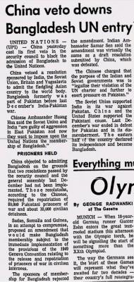 ১৯৭২ সালের ১০ আগস্ট এক সংবাদ সম্মেলনে শুরু হয় ভুট্টোর কূটচালের নতুন পর্যায়। সেখানে ভুট্টো বলেন : বাংলাদেশ মনে করে আমাদের যুদ্ধবন্দীদের ফিরিয়ে দেওয়ার ওপর ভেটো দেওয়ার ক্ষমতা তাদের আছে, এই ভেটো ক্ষমতা কিন্তু আমরাও রাখি।’ পরে এই বক্তব্যের ব্যাখ্যায় বলেন জাতিসংঘের সদস্যপদ পাওয়ার জন্য বাংলাদেশের আবেদনে ভেটো দিতে চীনকে তিনি অনুরোধ করেছেন। যুদ্ধবিধ্বস্ত বাংলাদেশের জন্য জাতিসংঘের সদস্য হ্ওয়াটা কতখানি জরুরি ছিলো ভুট্টো তা বুঝেছিলেন বলেই চেলেছিলেন চালটা। আর সেটা যে মিথ্যে হুমকি ছিলো না তার প্রমাণ দেয় চীন ২৫ আগস্ট তাদের প্রথম ভেটোটি প্রয়োগ করে বাংলাদেশের অপরাধ তারা যুদ্ধাপরাধীদের বিচার করতে চায়। বলা চলে পরাক্রম দুই পরাশক্তি যুক্তরাষ্ট্র ও চীনের মনোভাব অত্যন্ত অসহায় অবস্থায় ফেলে দিয়েছিলো বাংলাদেশ সরকারকে যার প্রমাণ মিলেছে পরের দু’বছরে। (চলবে)
